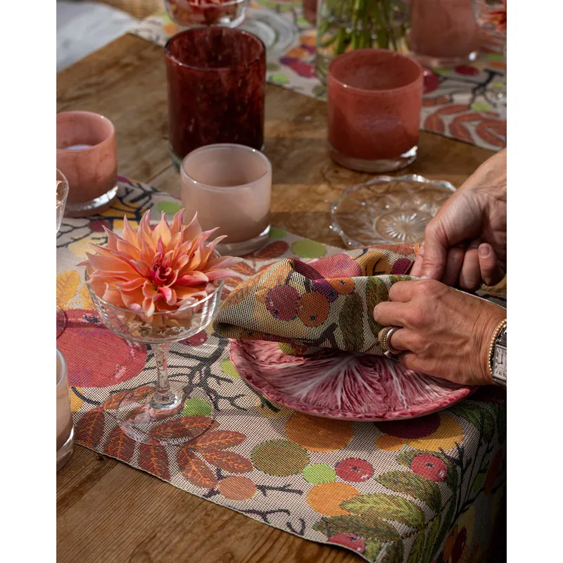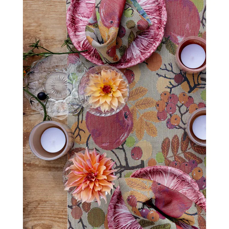 Care instructions: Machine wash at 60°C. Wash with similar colours with or without fabric softener. Shake out the runner thoroughly after washing and hang up to dry. For best results, lightly damp iron the runner lengthwise with a steam iron. For extra good results, shape the product after shaking it out.